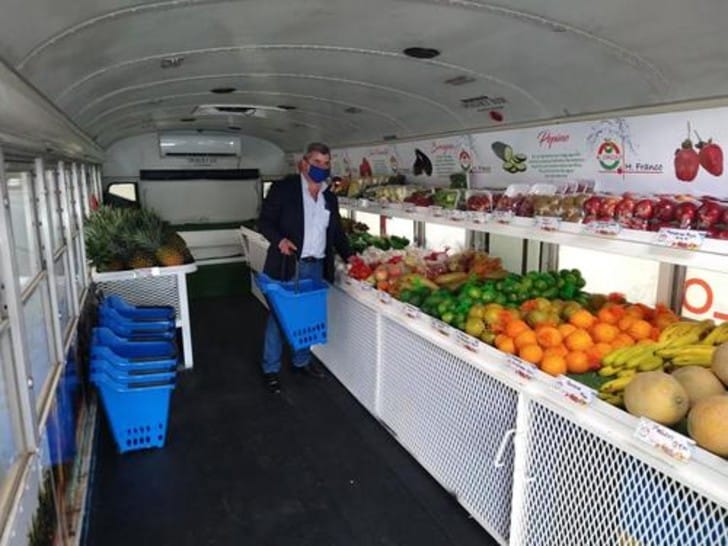 Aproveitando o espaço que esses ônibus possuem e a necessidade de fazer compras de uma forma segura, os proprietários encontraram uma forma de mesclar as duas ideias que resultaram em um engenhoso mercado móvel.