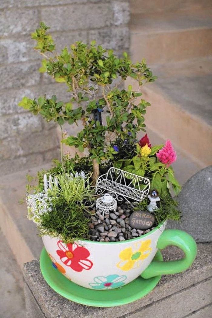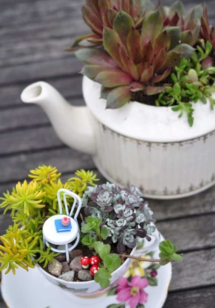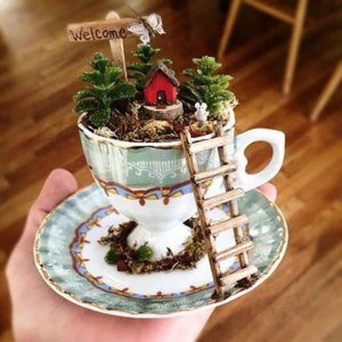 Hoje, entretanto, a CONTI outra encontrou uma tendência ainda mais linda no site Bored Panda: construir lindos mini jardins dentro de xícadas de chá.