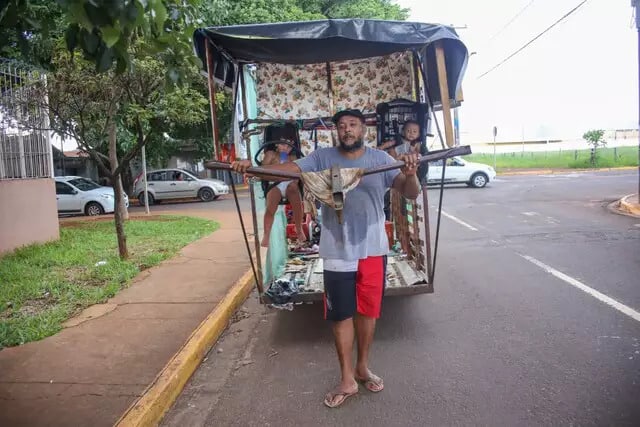 Se alguém merece ser reconhecido como “o pai do ano”, esse alguém certamente é Sidnei Lopes de Jesus. Trabalhando como catador de recicláveis na cidade de Campo Grande (MS), ele adaptou o carrinho que usa para recolher os materiais, de modo que possa carregar junto com ele todos os dias dois dos seus quatro filhos.