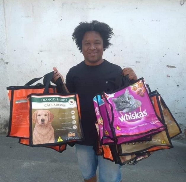 Se te perguntassem sobre a sua contribuição para a saúde do meio ambiente, o que você responderia? O nosso planeta, como bem sabemos, pede socorro, o que exige que cada um de nós adote atitudes para tentar ao menos amenizar o impacto negativo que o nosso estilo de vida causa ao planeta. Alguém que está dando sua contribuição é o estudante carioca de serviço social Wallace “Pala-pala”. Com criatividade e disposição, ele recicla embalagens vazias de ração, evitando que o material seja indevidamente descartado, transformando-as em lindas bolsas ecológicas, que substituem as nocivas sacolas plásticas de supermercados. E tem mais: com a verba arrecadada com a venda das ‘ecobags” ele ainda ajuda os animais de rua no Rio de Janeiro.