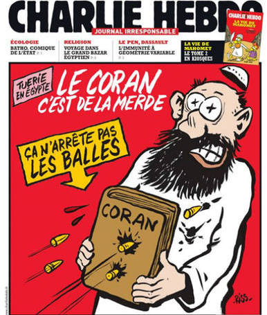 tratou de cuidar disso. Criando dezenas de charges ofensivas contra o Islã, a Charlie acentuou o preconceito e ainda profanou preceitos sagrados daquela religião. O povo islâmico era sempre retratado como idiotas armados em prontidão para matar e explodir, e Maomé, que para essa crença não pode ser de modo algum retratado, era objeto de escárnio, em charges de extremado mau gosto.