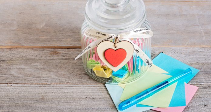 Adquira o hábito de, todos os dias, escrever um agradecimento num papelzinho e depositá-lo de forma amorosa dentro do pote.