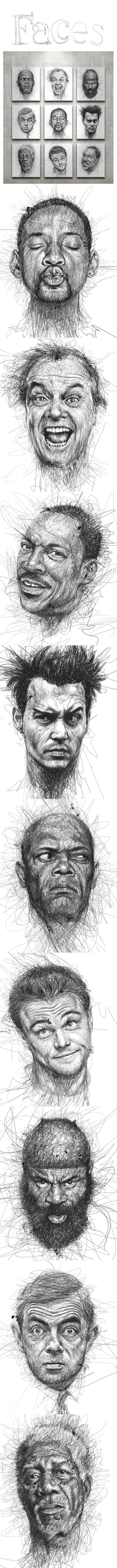 - Ele utiliza apenas linhas rabiscadas para produzir retratos impressionantes de estrelas