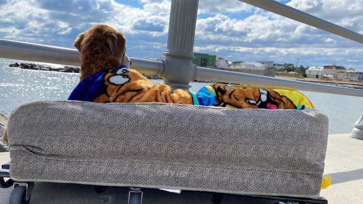 Durante anos, essa foi a paixão deles, então, quando sua família teve que presumir que a idade de Cocoa não permitiria mais que ela fosse à praia novamente, eles decidiram que precisavam fazer algo a respeito. Começando a trabalhar, Tom e sua família construíram uma versão alternativa da cama que o cachorrinha idosa normalmente usa para se deitar.