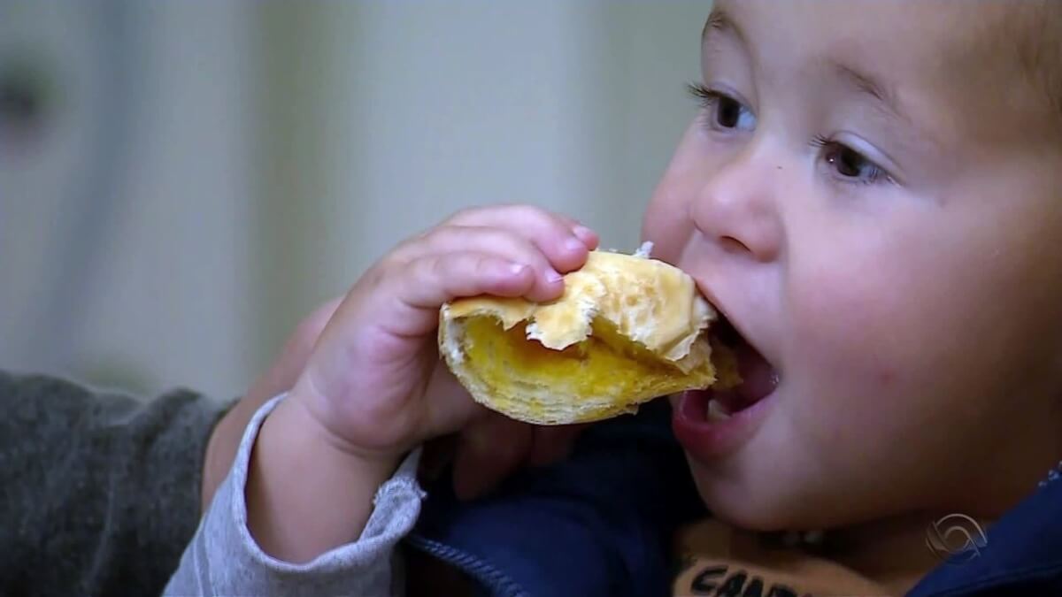 “Surpreendeu bastante. Ele é bem sapequinha. Ele come de tudo. É bom de garfo”, conta, rindo, a mãe Pâmela Taís Rech, de 25 anos, à RBS TV.