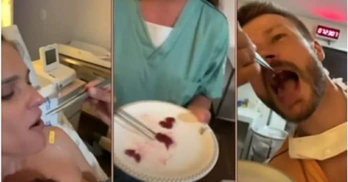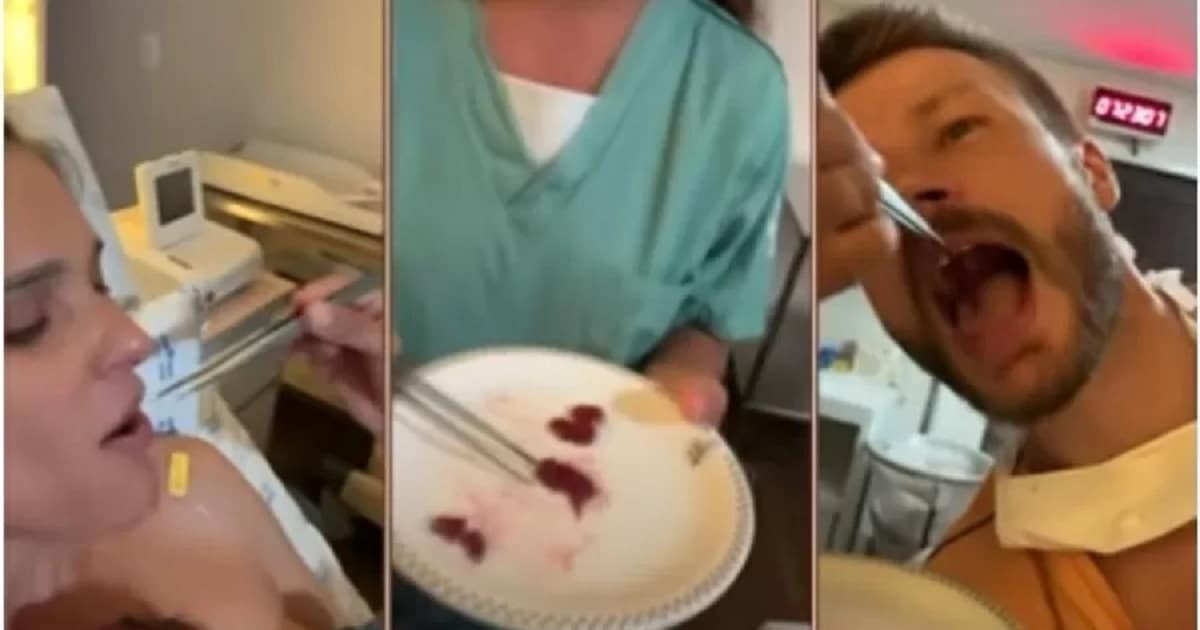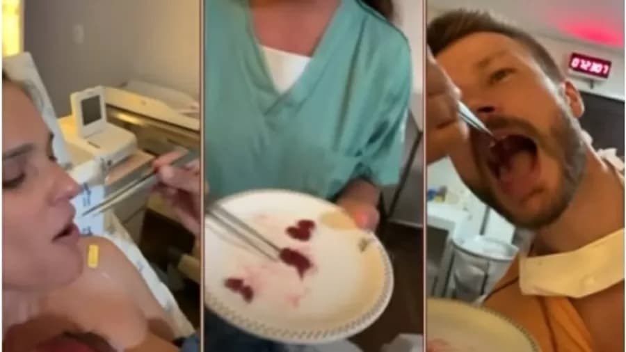 As imagens exibidas no programa mostram o momento em que uma profissional de saúde entrega a placenta para eles comerem e brinca dizendo que é “para chocar a sociedade”, no que a apresentadora ironiza: “Pausa e drama”.