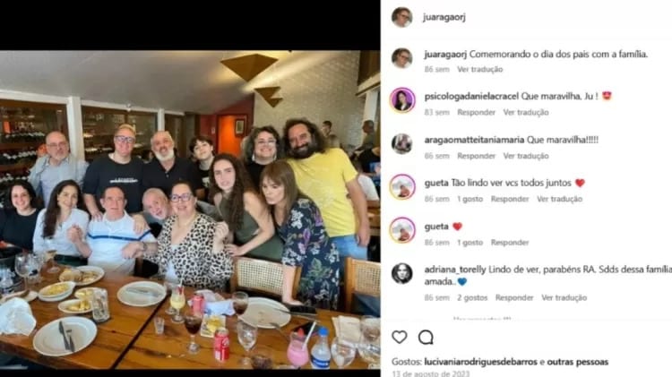 A última publicação de Juliana com Renato Aragão foi feita em 13 de agosto de 2023. Na ocasião, ela compartilhou uma foto de um almoço em família em comemoração ao Dia dos Pais, com a legenda: “Comemorando o dia dos pais com a família”.