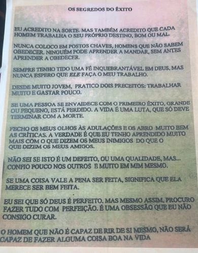 Uma carta escrita por Silvio Santos antes de sua morte foi descoberta recentemente pelas filhas do apresentador. O documento, intitulado “Os Segredos do Êxito”, reúne reflexões pessoais sobre temas como trabalho, fé, liderança e vaidade, e foi entregue aos funcionários do SBT nesta terça-feira (27) por Daniela Beyruti, atual presidente da emissora.