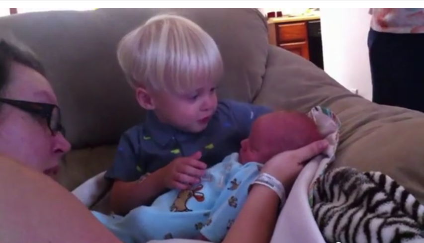 Essa mãe definitivamente soube como apresentar seu bebê recém nascido ao filho mais velho.
