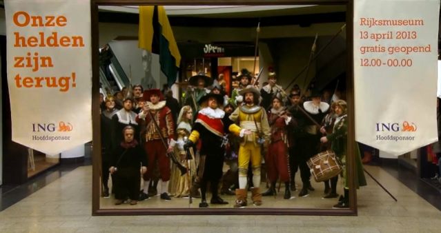 A pintura de Rembrandt, “A Ronda Noturna”, ganhou movimento e forma em um flash mob realizado em um shopping da Holanda, para celebrar o retorno da obra ao museu nacional Rijksmuseum, em Amsterdã, dedicado às artes e história. O Rijksmuseum foi fundado em Haia em 1800 e mudou-se para Amsterdã em 1808. O museu que está fechado para reforma desde 2003, deve ser reaberto em 13 de abril pela rainha Beatrix.