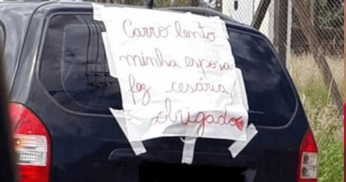 Foto de veículo com cartaz: “Carro lento, minha esposa fez cesária”, viraliza nas redes sociais