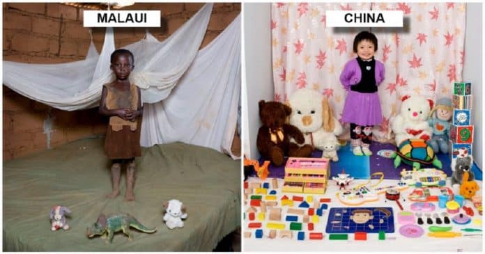 Em entrevista ao Bored Panda, Gabriele explicou que começou este projeto por acaso… “A primeira foto que tirei para esta série foi na Toscana, é aquela com a menina e as vacas ao fundo. Ela é filha de um dos meus melhores amigos. Ela me pediu para fotografá-la, então fui até a casa dela e ela estava brincando com as vacas. Achei aquela situação muito legal e resolvi tirar uma foto desse momento. Pedi para ela posar ao lado de seus brinquedos e com as vacas ao fundo. Então fiquei muito satisfeito com o resultado e alguns meses depois, quando pude começar minha viagem pelo mundo, decidi tirar o mesmo tipo de foto em cada país que ia visitar.”