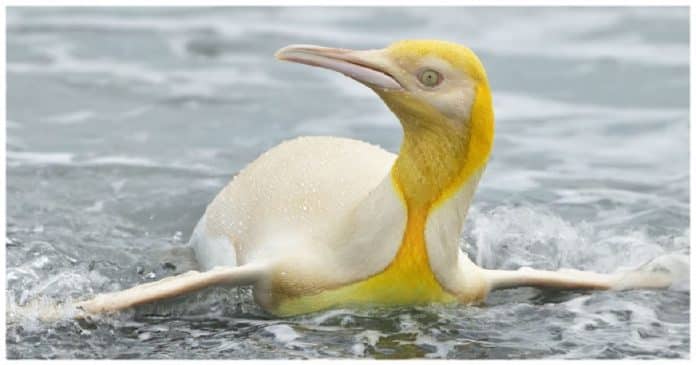Embora os pinguins sejam conhecidos por sua pelagem preta e branca, um homem da Bélgica chamado Yves Adams, um guia de expedição e fotógrafo da vida selvagem flagrou um estranho pinguim com pelagem amarela e branca, durante uma uma expedição fotográfica de dois meses pelo Atlântico Sul em 2019.