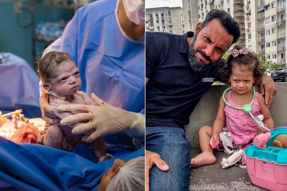Rodrigo conta que só notou a expressão de brava da recém-nascida depois de sair do centro cirúrgico.