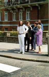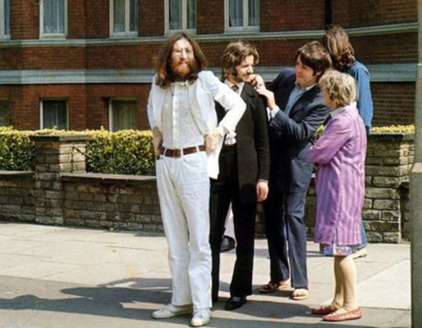 Os Beatles antes de uma das fotos mais famosas do mundo, a capa do disco Abbey Road.