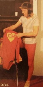 Roberto Bolaños em uma troca entre seus dois épicos personagens: Chaves e Chapolin.
