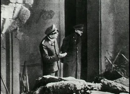 Olhando os destroços da chancelaria, essa foi a ultima foto de Adolf Hitler.