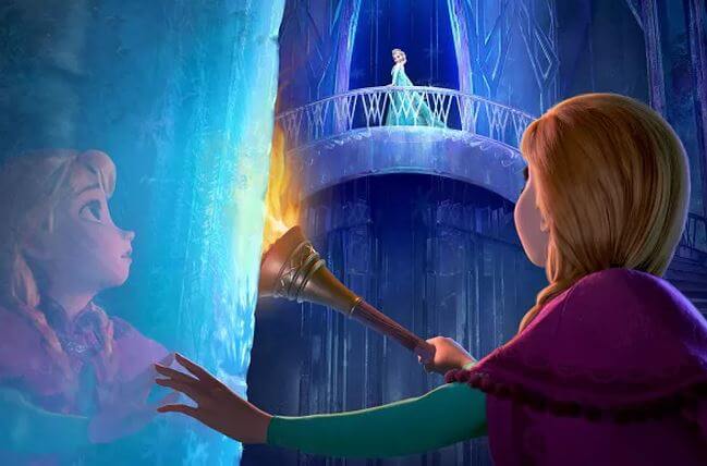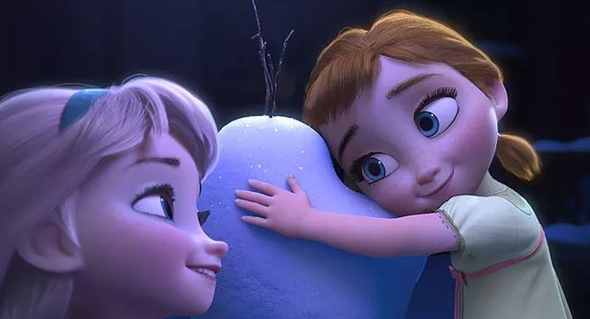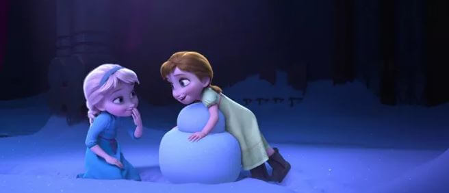 No filme, as princesas Elsa e Ana viviam felizes num lindo reino. Elsa detinha poderes secretos e os usava de forma lúdica para se divertir com a irmã. Criavam brincadeiras juntas, e nelas Elsa fazia surgir, com sua magia, neve, tobogãs e bonecos de neve, explorando o mundo da fantasia e criatividade junto com Ana. Eram próximas e cúmplices, até que certo dia, num acidente, Elsa atinge com um raio a cabeça da irmã, ferindo-a.