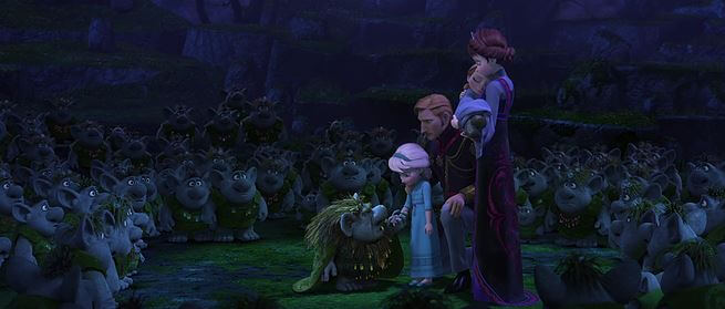 Ao perceberem a situação, os pais se apavoram, repreendem Elsa e levam as duas para verem os trolls (os especialistas em amor), que no filme aparecem como seres elementares e totalmente ligados à natureza e, portanto, têm papel de curandeiros/sábios da floresta. Estes falam que por sorte o raio atingiu a cabeça e não o coração: “a cabeça é mais fácil de convencer; já o coração, não”, dizem eles.
