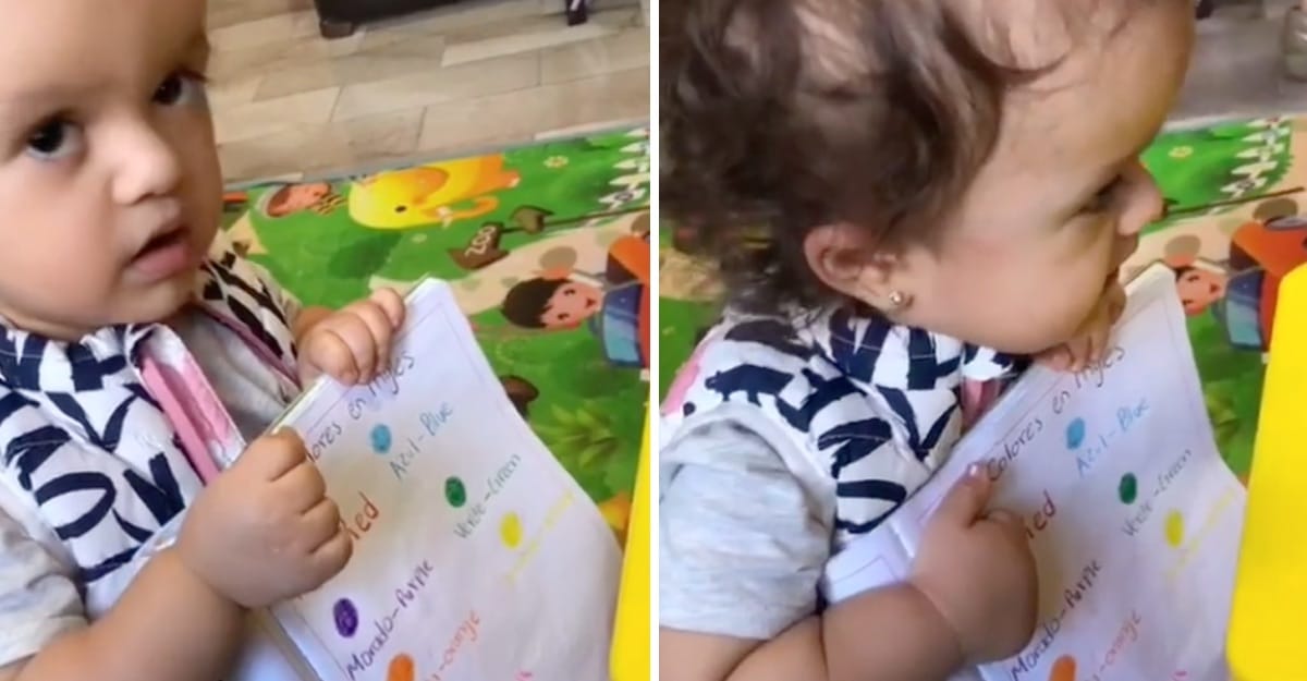 No registro, você pode ver como a pequena Maria ensina cores em inglês para uma de suas bonecas de brinquedo. O vídeo não deixou ninguém indiferente à tamanha ternura desta pequena “professora”.