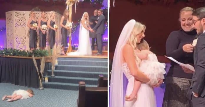Nesse caso, a birra de uma menininha ocorreu em um contexto bastante comprometedor: o casamento dos pais. A noiva Sara Wickman, dos Estados Unidos, compartilhou o registro da cerimônia, que ocorreu em 2019, em suas redes sociais, justamente no momento em que sua filha Ellie, que tinha quase dois anos na época, se jogou dramaticamente no chão bem no momento em que o casal de noivos estava lendo seus votos.