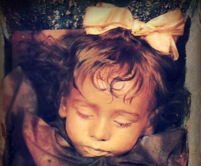 Rosália Lombardo, uma criança de 2 anos, faleceu de pneumonia, em Palermo, Itália, em 1920, ou seja, há 94 anos. Seu pai ficou completamente desolado e chamou Dr. Alfredo Salafia para embalsamar o corpo da criança. O médico era um renomado embalsamador na época, famoso por ter estudado técnicas de mumificação nas tumbas faraônicas do Egito.