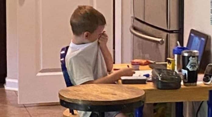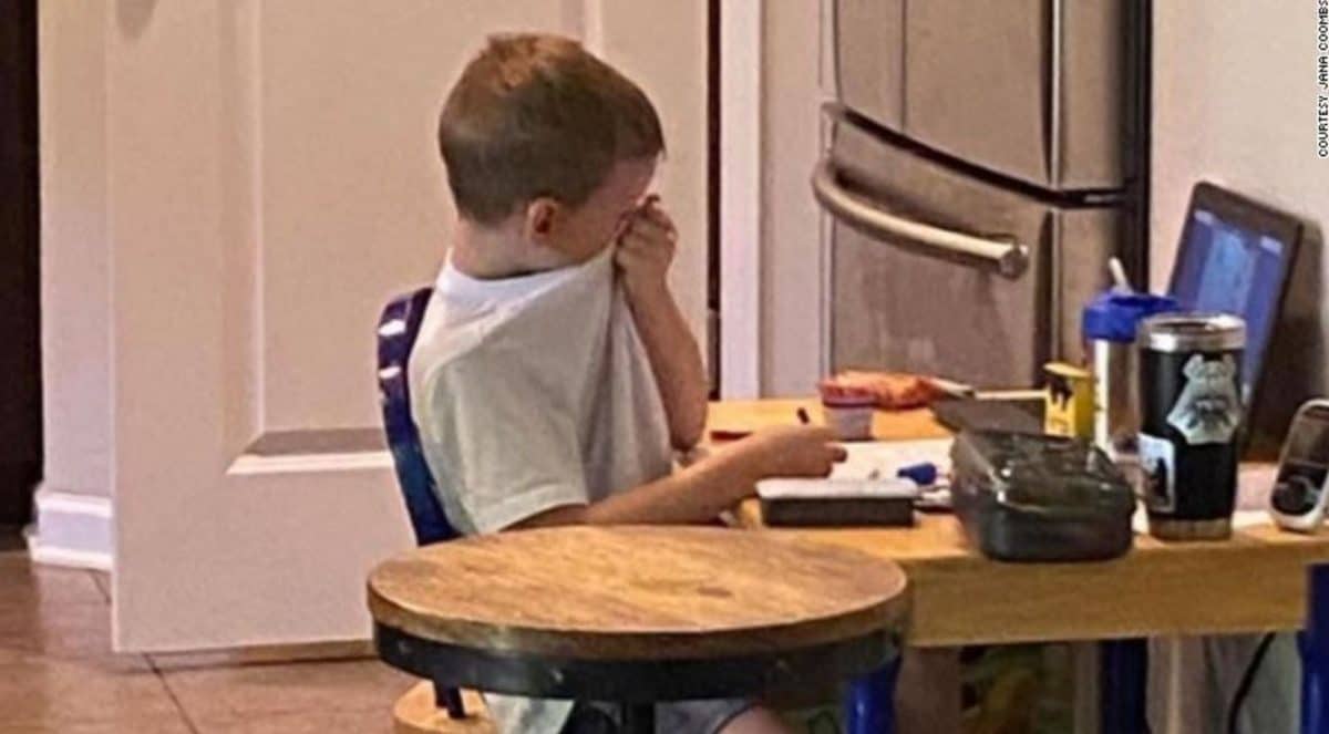 Na legenda do post, a mãe conta que levou mais de uma hora para conseguir acalmar o garoto. “Ele está completamente sobrecarregado e frustrado”, escreveu a mãe do aluno do 5º ano, que preferiu não se identificar.