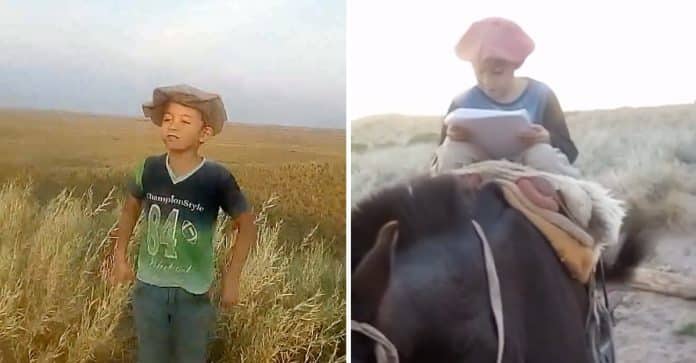 Em um dos vídeos publicados por sua professora, o menino pode ser visto lendo uma das músicas que eles mandam para a aula, sempre montado em seu animal de estimação favorito, seu cavalo chamado Furry.