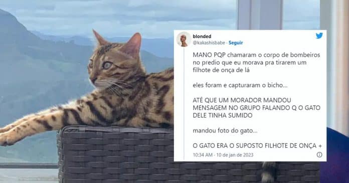 Em uma nota oficial, o Corpo de Bombeiros informou que quando chegaram ao local, os agentes perceberam que não se tratava de uma onça e pensaram que era um gato-do-mato.