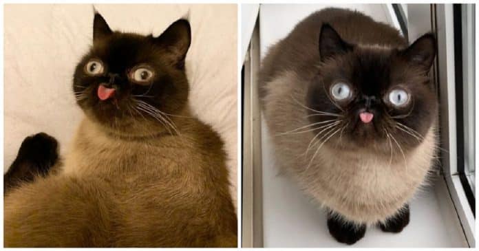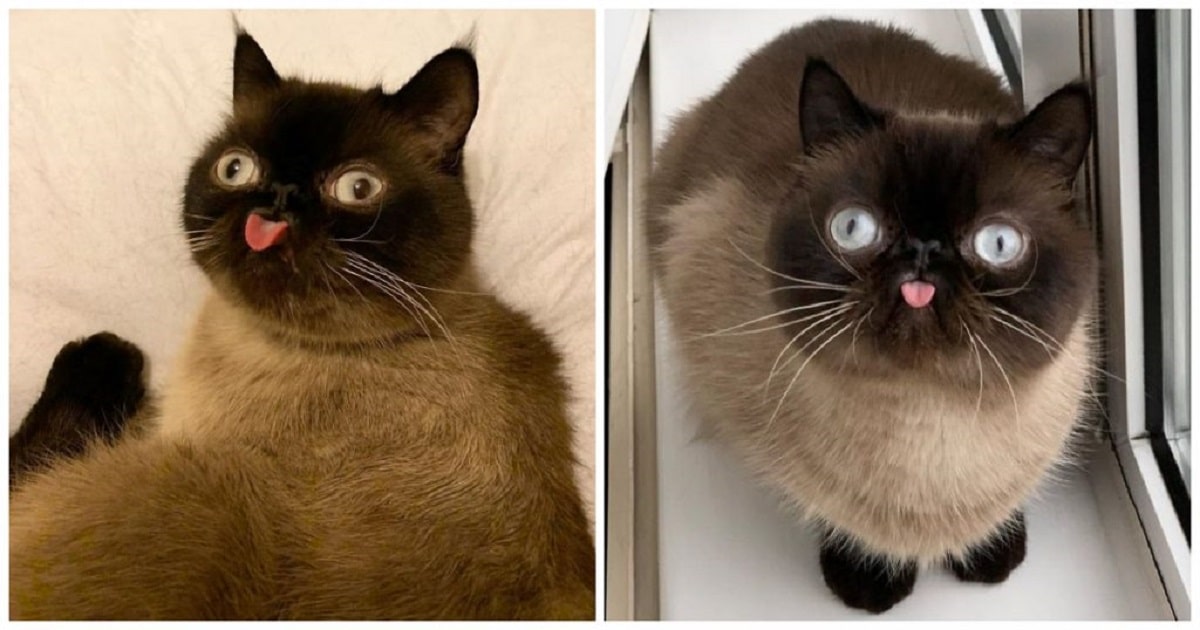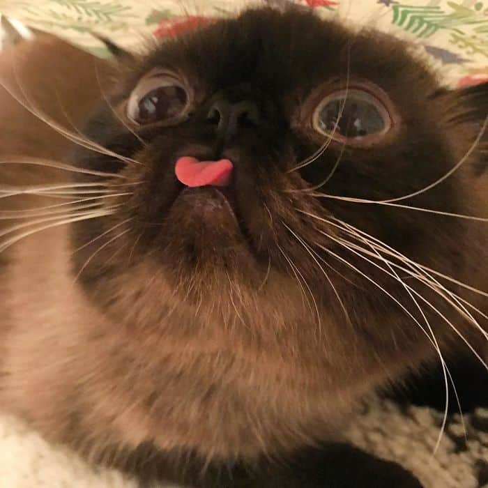 Gato conquista a web com fotos fofíssimas em que aparece mostrando a língua