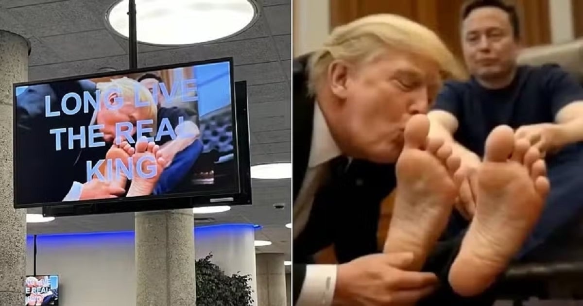 Na manhã desta segunda-feira (24/2), hackers invadiram o sistema do Departamento de Habitação e Desenvolvimento Urbano dos Estados Unidos (HUD) e exibiram, em uma televisão da cafeteria da sede do órgão, um vídeo gerado por inteligência artificial em que o ex-presidente Donald Trump aparece acariciando e beijando os pés do bilionário Elon Musk. As imagens foram acompanhadas de uma mensagem em letras garrafais: “VIDA LONGA AO VERDADEIRO REI”.
