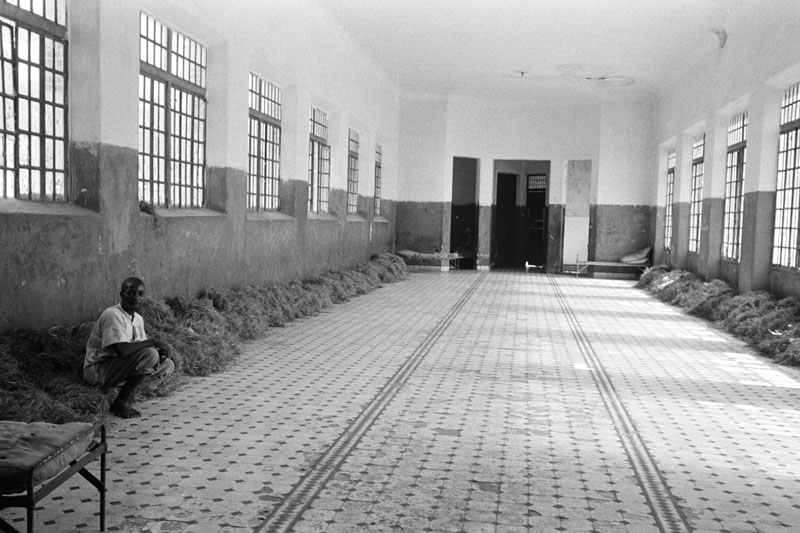 Pavilhão onde internos dormiam no “leito único”, nome oficial para substituição de camas por capim
