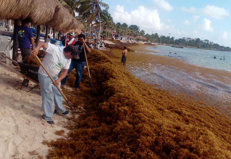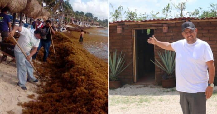 O objetivo de Omar é aproveitar o excedente de um material que está afetando as praias do estado de Quintana Roo para construir casas de baixo custo para quem precisa.