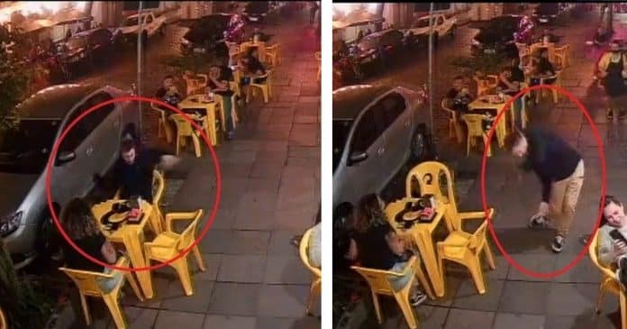 O rapaz publicou o vídeo no Twitter e chegou a ter 1,8 milhão de reproduções, além de 122 mil curtidas. O registro do momento cômico foi feito por uma câmera de segurança e mostram Bruno sentado na calçada de um bar, no centro de Porto Alegre, enquanto conversa com uma mulher.