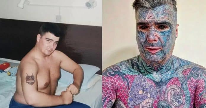O britânico, que atualmente se identifica como King Of Inkland King Body Art, ou B-Art, tem praticamente toda a sua pele tatuada. Ele também removeu os pórpios mamilos