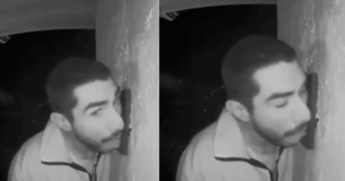 🚨VEJA: A câmera de segurança de uma residência registrou um homem lambendo uma campainha por três horas. pic.twitter.com/rvxamONand
