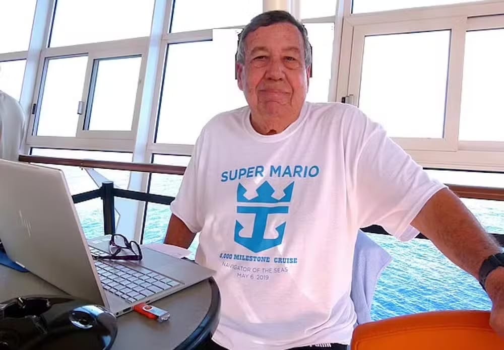 O empresário cubano Mario Salcedo, de 73 anos, é um caso único de estilo de vida em alto-mar. Conhecido como “Super Mario” no universo dos cruzeiros, ele completou recentemente sua milésima viagem a bordo de navios da companhia Royal Caribbean. Salcedo mora em embarques há 25 anos, gastando cerca de US$ 100 mil (aproximadamente R$ 589 mil) por ano para manter sua rotina em uma cabine com varanda.