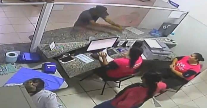 As imagens das câmeras de segurança da unidade de saúde se espalharam pelas redes sociais, mostrando o momento em que o homem atira os aracnídeos no balcão da recepção.