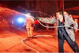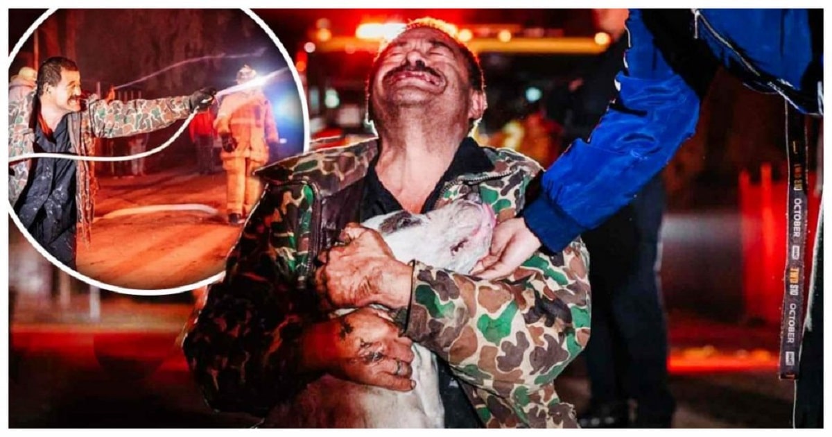 Felizmente, alguns segundos depois, o cão latiu e as pessoas começaram a procurá-lo e foi precisamente Mario quem o viu debaixo do carro e imediatamente agarrou numa mangueira para abrir caminho através do fogo e correr em sua direção para salvá-lo.
