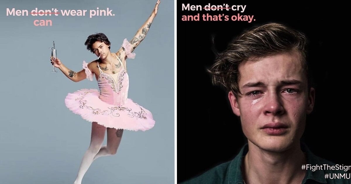 Seus sete pôsteres emocionantes buscam expor várias práticas comumente referidas como parte da “masculinidade tóxica”. Entre eles está um dos mais tolos e deve desaparecer mais rápido: aquele que os homens “não usam rosa”.