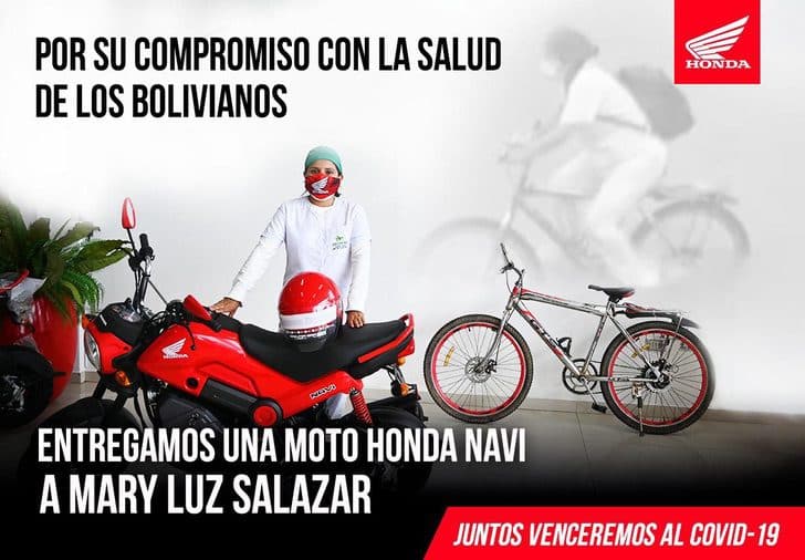 Por seu compromisso e sua dedicação, a enfermeira recebeu muitos elogios e parabenizações nas redes sociais, deu entrevistas e até apareceu na televisão. Mas não foi só isso, porque agora a Honda, uma das mais importantes fabricantes de automóveis e motocicletas no mundo, resolveu presentar a enfermeira com uma motocicleta.