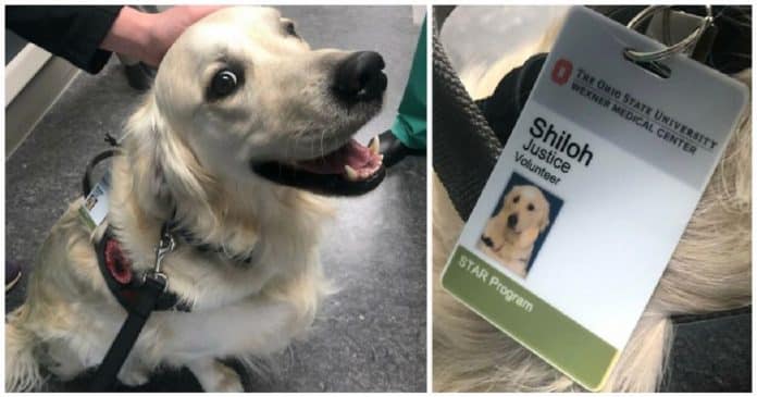 O cachorro chamado ‘Shiloh’ se tornou uma celebridade no hospital e internacionalmente desde que um médico que trabalha lá compartilhou a história da contratação do cãozinho em sua conta no Twitter e rapidamente se tornou viral, fazendo com que milhares de internautas se apaixonassem por ele.
