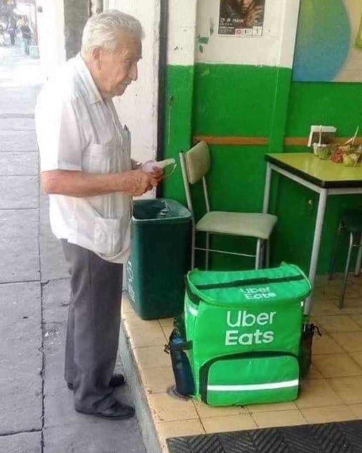 Apesar da idade avançada e das dificuldades que isso representa para o trabalho, aos 70 anos ele decidiu começar a trabalhar como entregador de alimentos para obter o seu sustento.