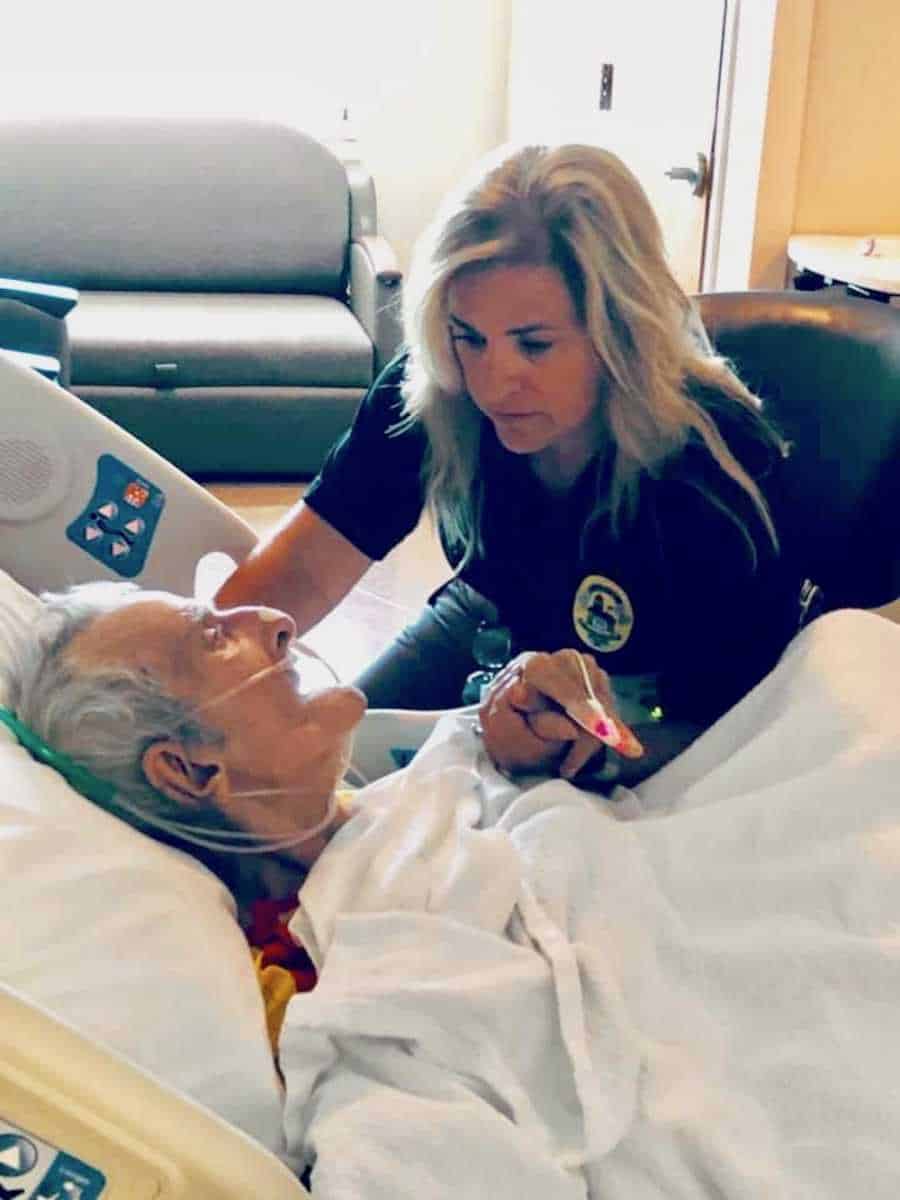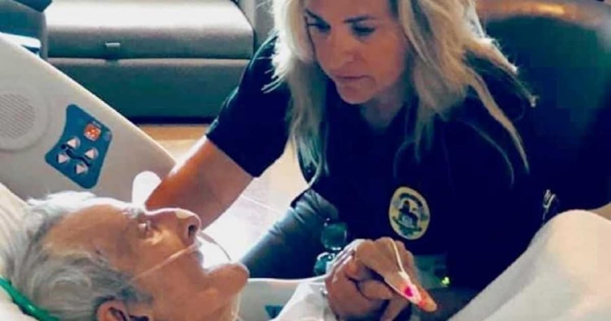“Você pode olhar para esta foto e ver uma neta carinhosa confortando seu amado avô enquanto ele está debilitado em uma cama de hospital. Mas a verdade é que essa mulher é policial e conheceu Bob há apenas dois anos, quando estava à serviço. A vida da oficial do Departamento de Polícia de Lawrenceville (EUA), Dena Walker Pauly, mudou para sempre quando ela foi enviada a uma loja de penhores local, onde os funcionários não tinham certeza de como ajudá-lo.