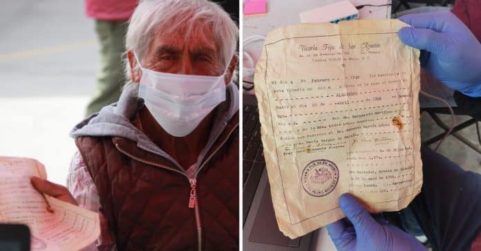 “Não há desculpas para não ir à vacinação; como o senhor Alejandro Martínez López que, para não ficar de fora, nos trouxe sua certidão de batismo de 1957 para solicitar seu CURP e registrá-lo na plataforma, para receber a primeira dose de sua imunização contra COVID-19 “, escreveram a partir da conta do Facebook da Câmara Municipal de San Salvador.