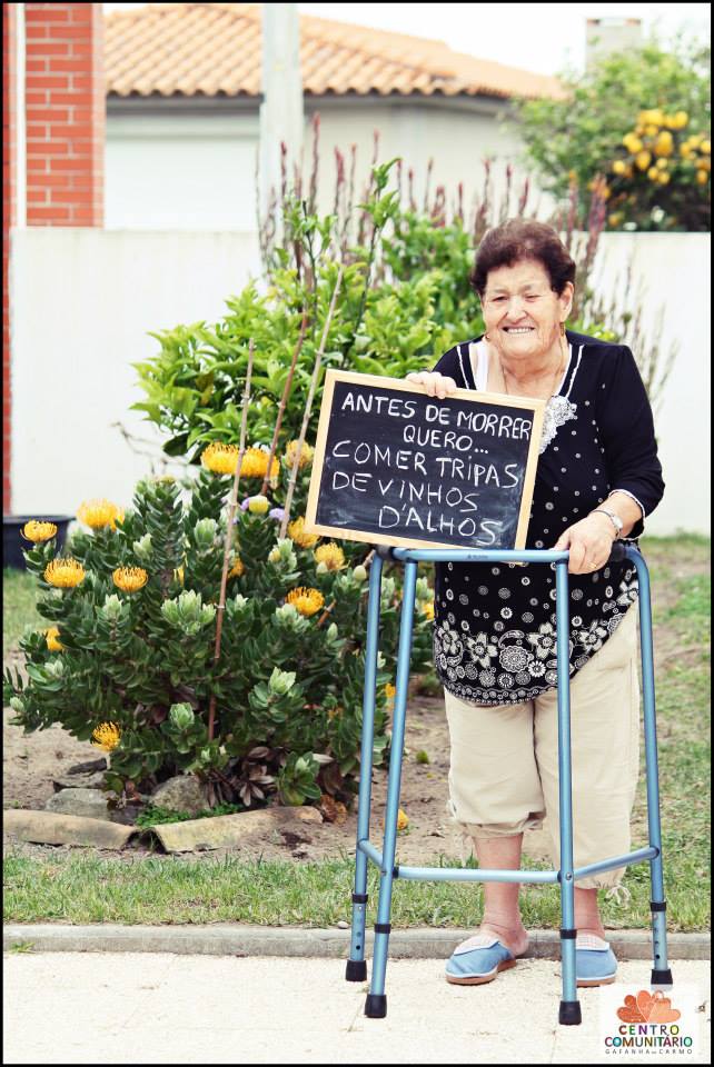 O que você quer fazer antes de morrer? O animador Ângelo Valente e a gerontologista Sofia Nunes fizeram essa pegunta para um grupo de idosos que moram no centro comunitário da Gafanha do Carmo, em Aveiro, Portugal.
