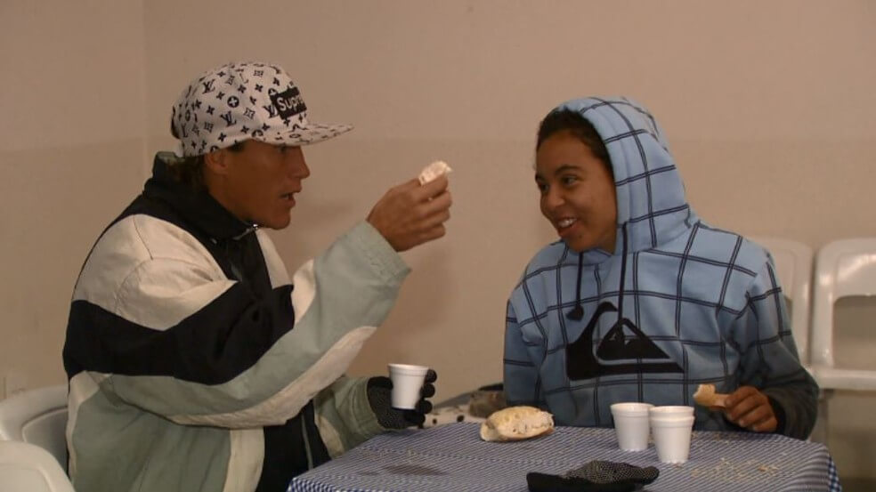 Larissa Rodrigues, que é moradora de rua, conta que acordou cedo e com um sorriso no rosto para tomar o café da manhã. Ela contou que foi recebida com muita atenção e respeito.