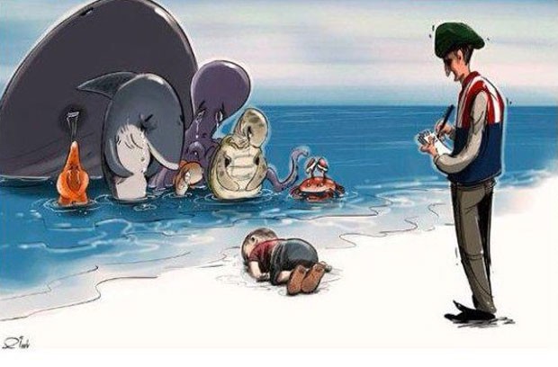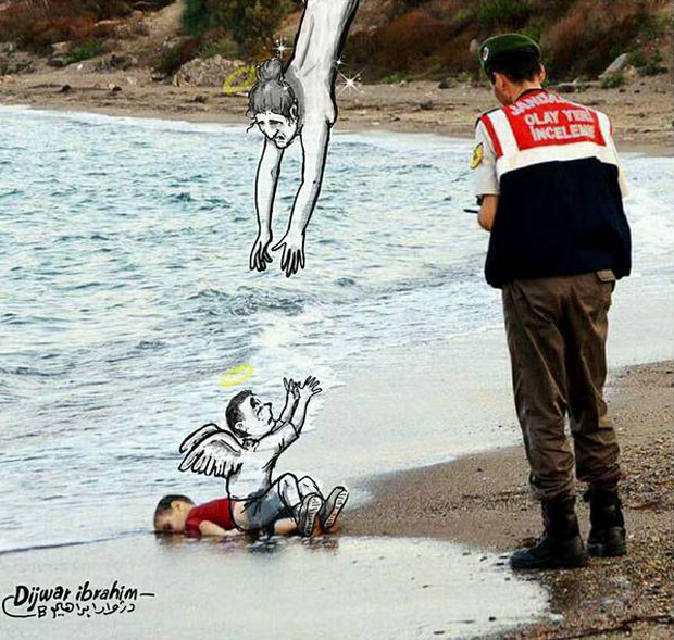 O menino sírio Aylan Kurdi, encontrado morto em uma praia na Turquia, tem recebido uma série de homenagens na internet. Através das redes sociais, ilustrações vêm sendo veiculadas mostrando Aylan com asas de anjos, dormindo e em cenários lúdicos.