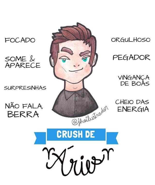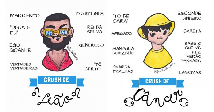 O ilustrador Pedro, da página e canal “Jhotromundo” mostrou em 12 ilustrações como seriam os famosos “crushs” de cada signo do zodíaco.