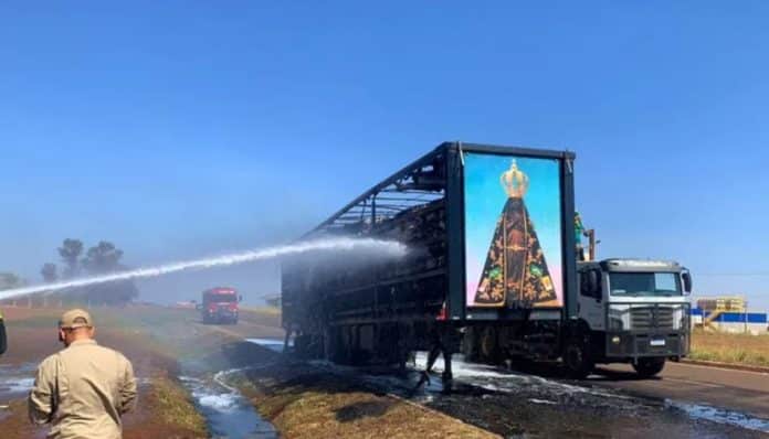 Há quem acredite que a fé verdadeira traz proteção nos momentos mais difíceis da vida de um homem. E esse talvez seja o caso do motorista de caminhão de algodão que, na manhã desta quinta-feira (28), pegou fogo na rodovia federal 267, em Bataguassu (MS). Como publicado no G1, apesar das chamas terem consumido a parte de carga do veículo, uma imagem de Nossa Senhora Aparecida, que estava acoplada ao espaço, permaneceu intacta.